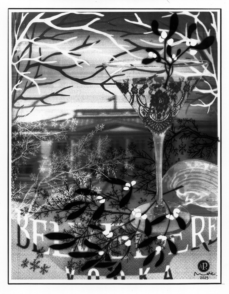 Arsenic & Old Lace (1910 Broadway cocktail) is a six-layer photo collage contact print 10″x 8″ Edition of 100 prints – 2025